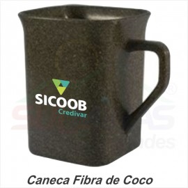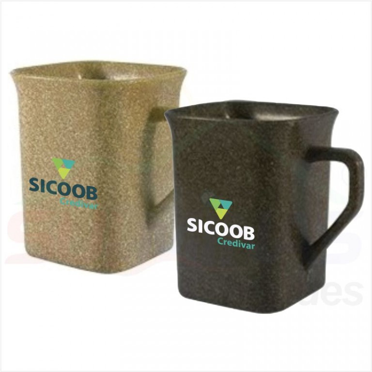 Caneca quadrada 250 ml feita com 50% de Fibra de Madeira / coco. O material é resistente a micro-ondas e máquina de lavar louça, garantindo a segurança e durabilidade do produto.
