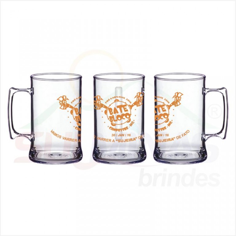 Caneca produzita em plástico PP tipo acrílico de alta resistência com capacidade para 400ml.