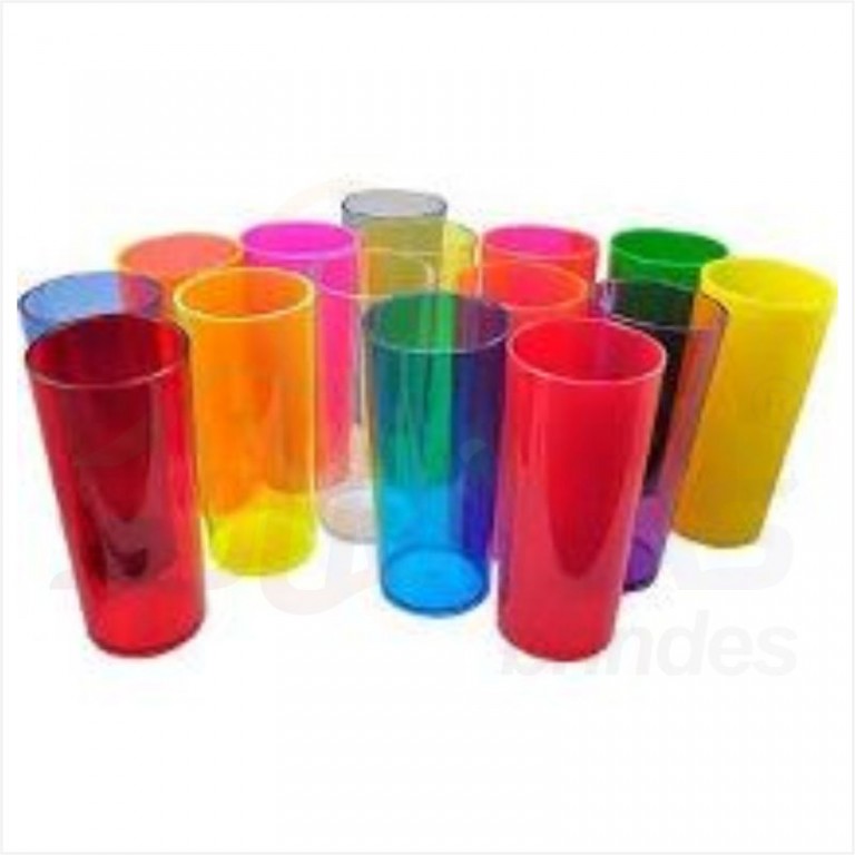 Copos Long Drink em acrílico (poliestireno – material não tóxico) que são bem resistentes à quedas e impactos.
