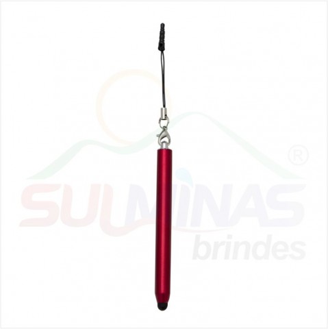 Mini caneta plástica com touch. Bastão com borracha touch na ponteira, para utilizar a caneta basta desrosquear compartimento superior. Acompanha cordão.