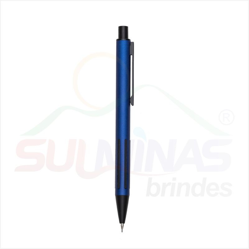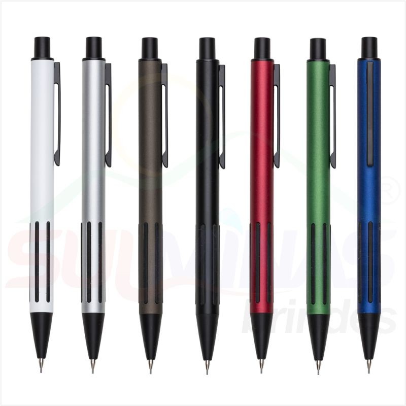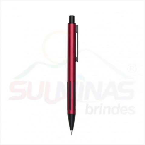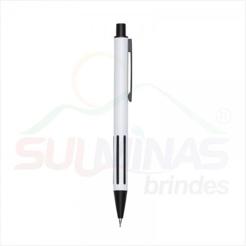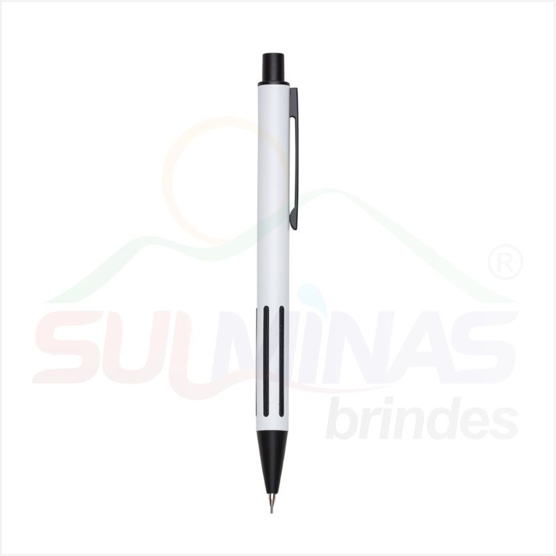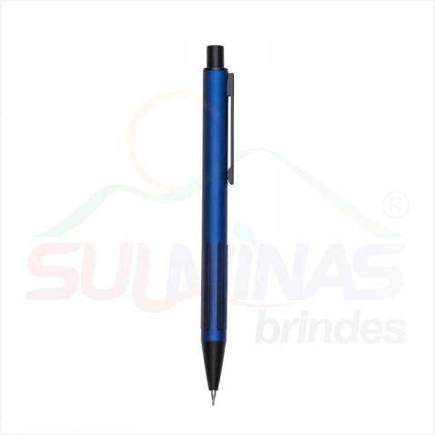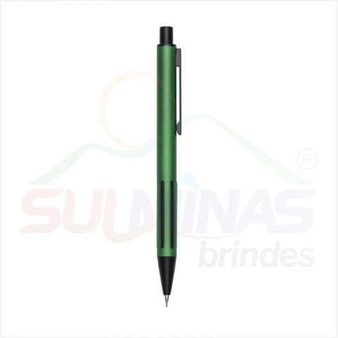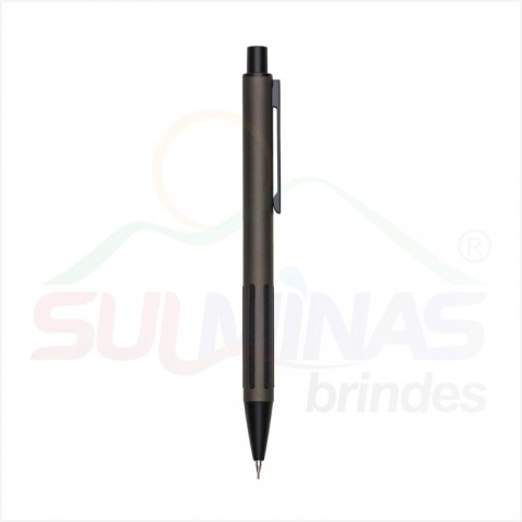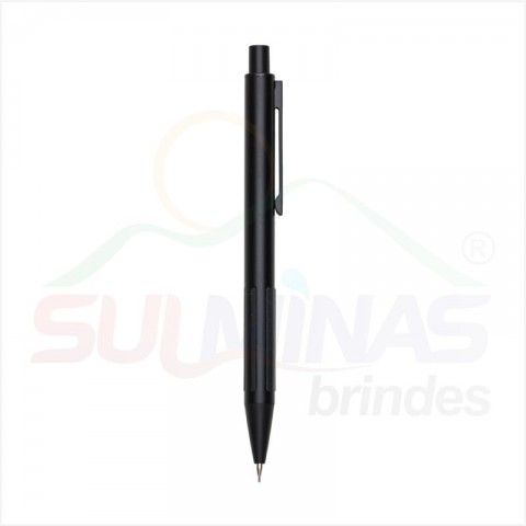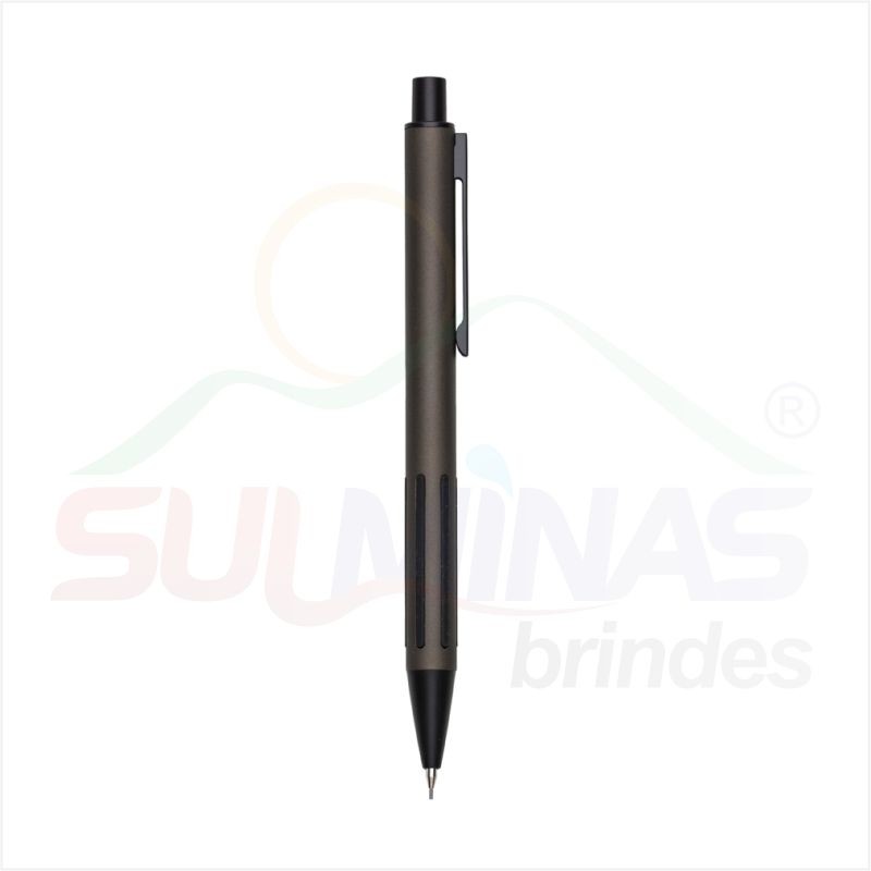Lapiseira metal com pintura fosca e detalhes preto. Clip metal, possui seis traços pretos emborrachados na parte inferior. Aciona por clique.