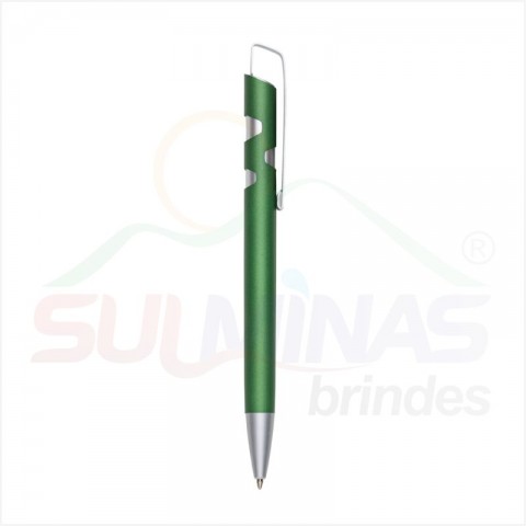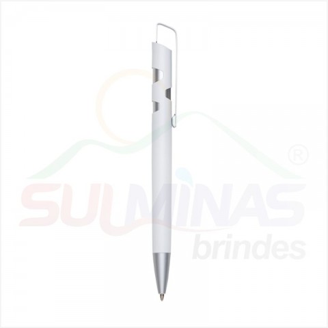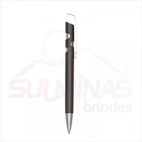Caneta semi-metal inteira colorida de pintura fosca e detalhes prata. Clip de chapa metálica, possui detalhes vazados na parte superior. Aciona por clique.