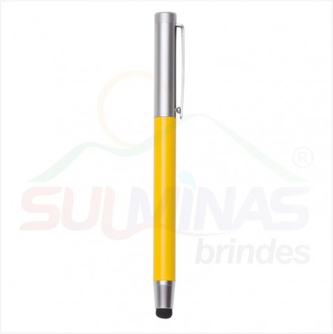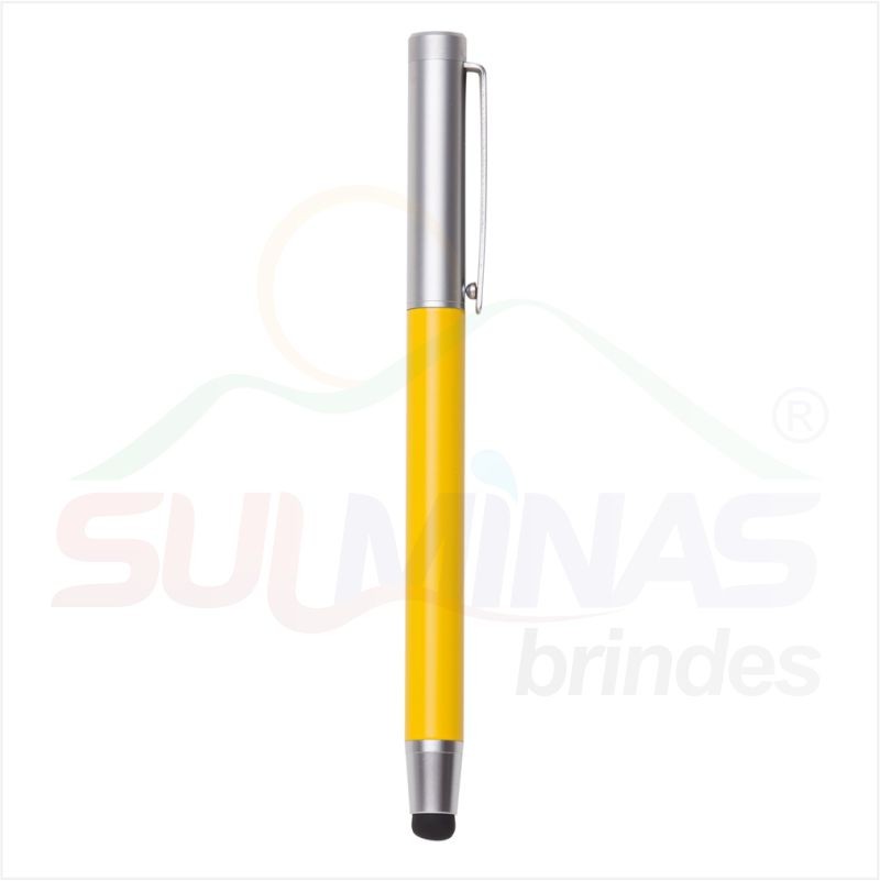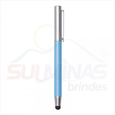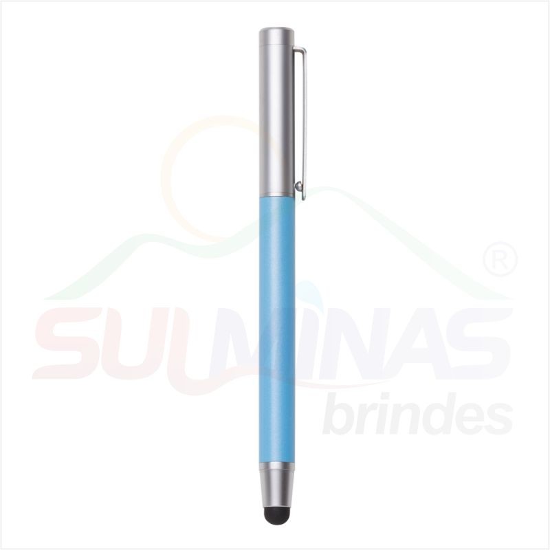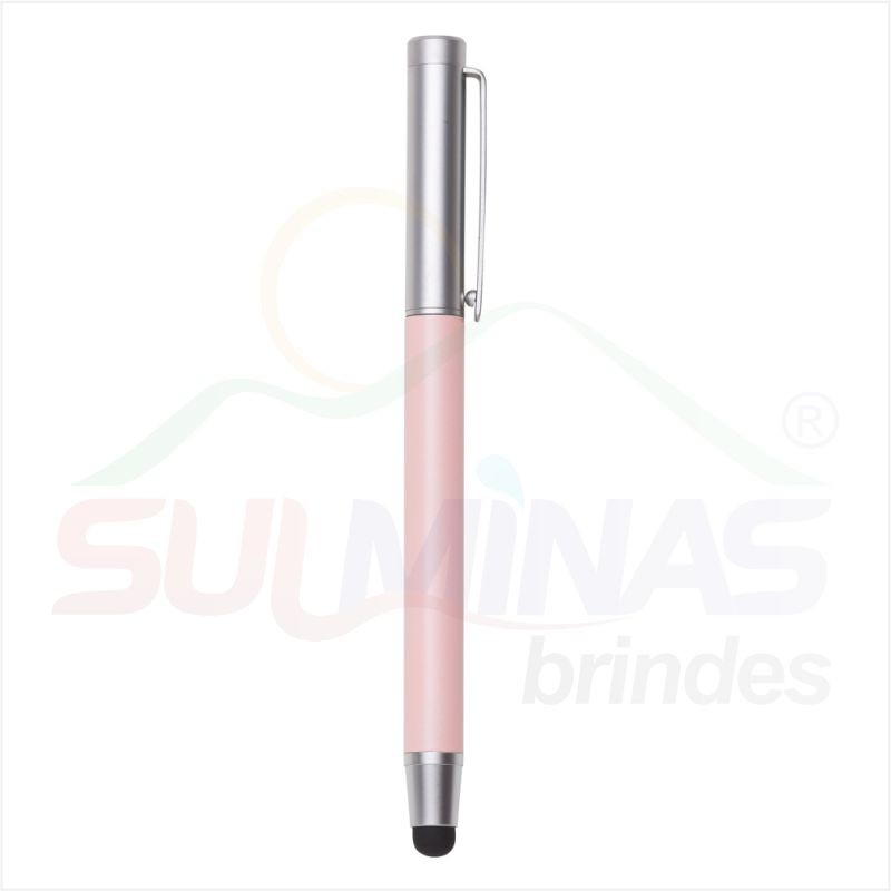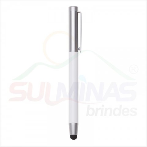Caneta metal roller com touch com detalhe colorido. Clip metálico, basta tirar a tampa para uso da esferográfica (possui dois anéis internos coloridos). Tampa e parte inferior prata, parte touch é rosqueável e acompanha uma borracha touch reserva.